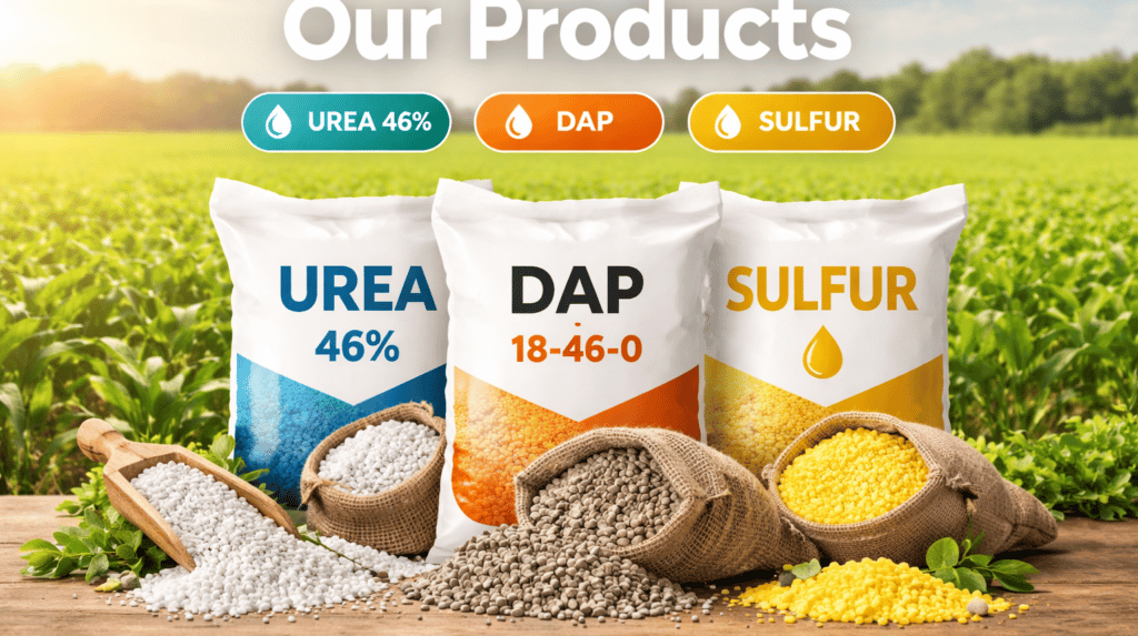Premium DAP and MAP products sourced from global reserves ensure phosphorus availability for essential root development and energy transfer in industrial agriculture.